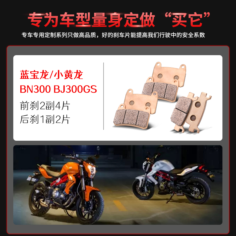 Suitable for Sappolon BN300 BJ300GS metal front and rear brake leather brake pads