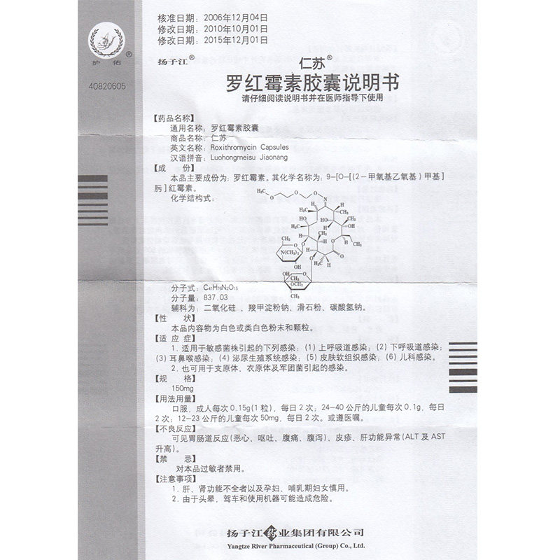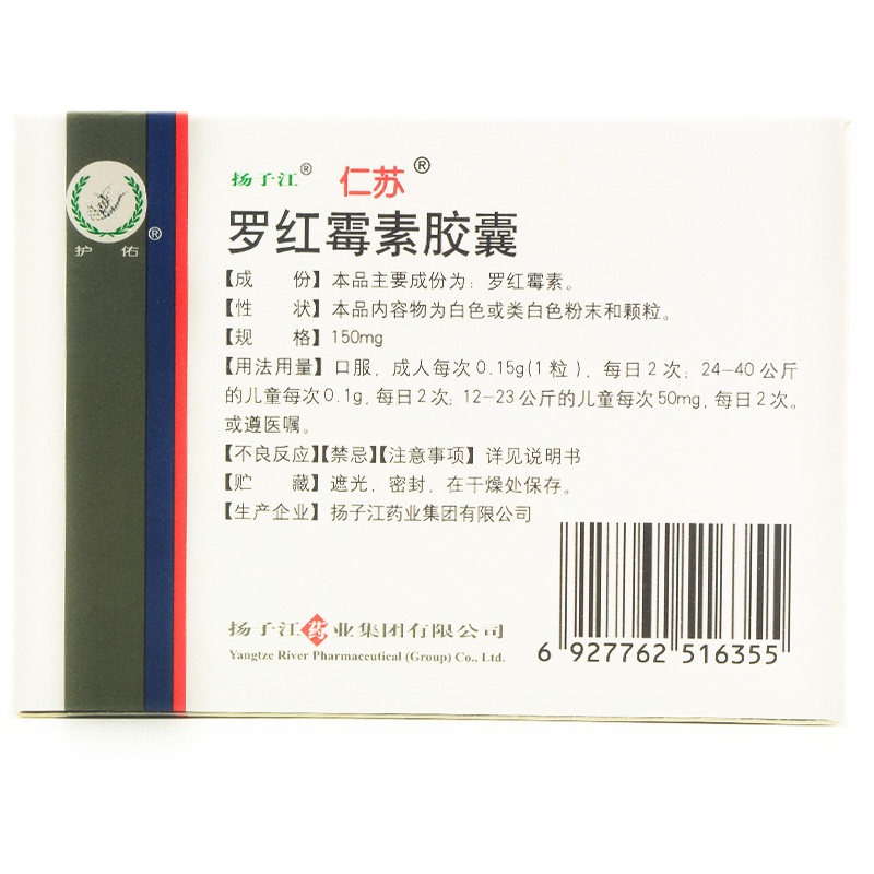 Ren Su Ren Su Luo Erythromycin capsule 150mg*12 capsules box Anti-inflammatory respiratory tract Urogenital tract infection Skin soft tissue infection Pediatric infection Mycoplasma Chlamydia Legionella infection