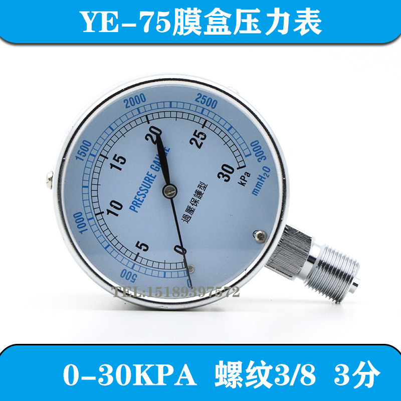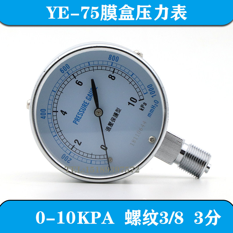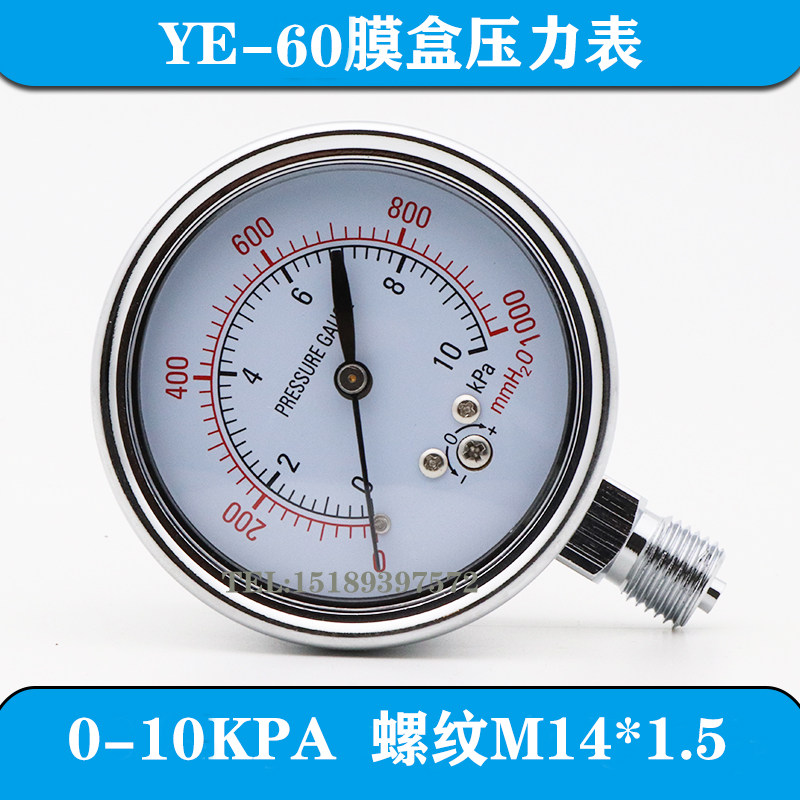 YE75 60 film box pressure gauge 0-10 16 25 30 40 50 60KPA micro pressure gauge KPA meter Gas meter