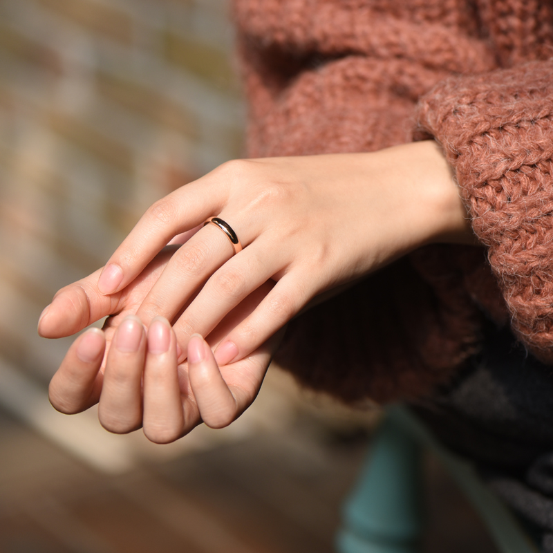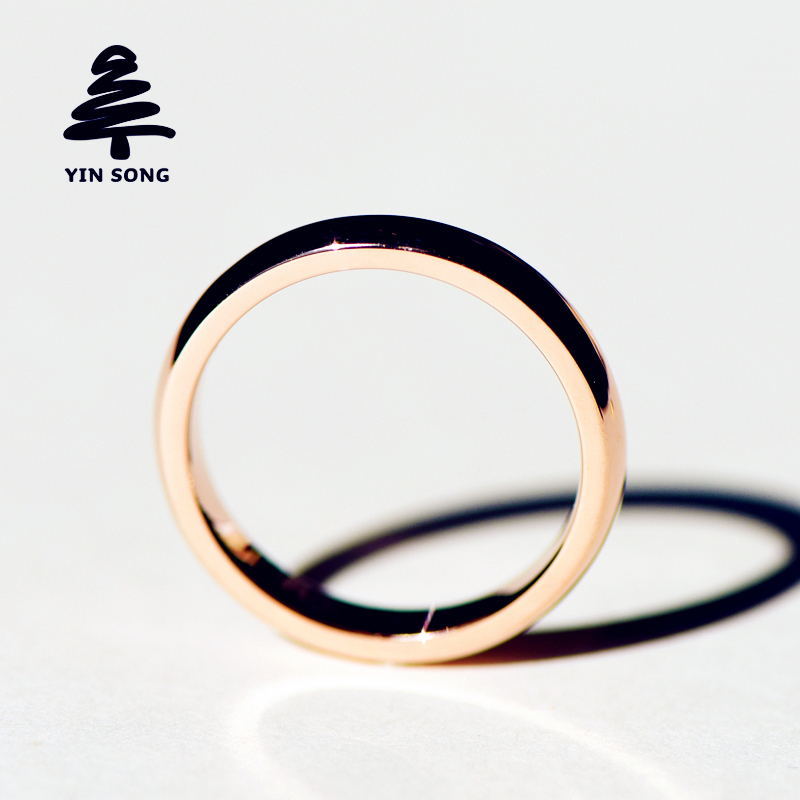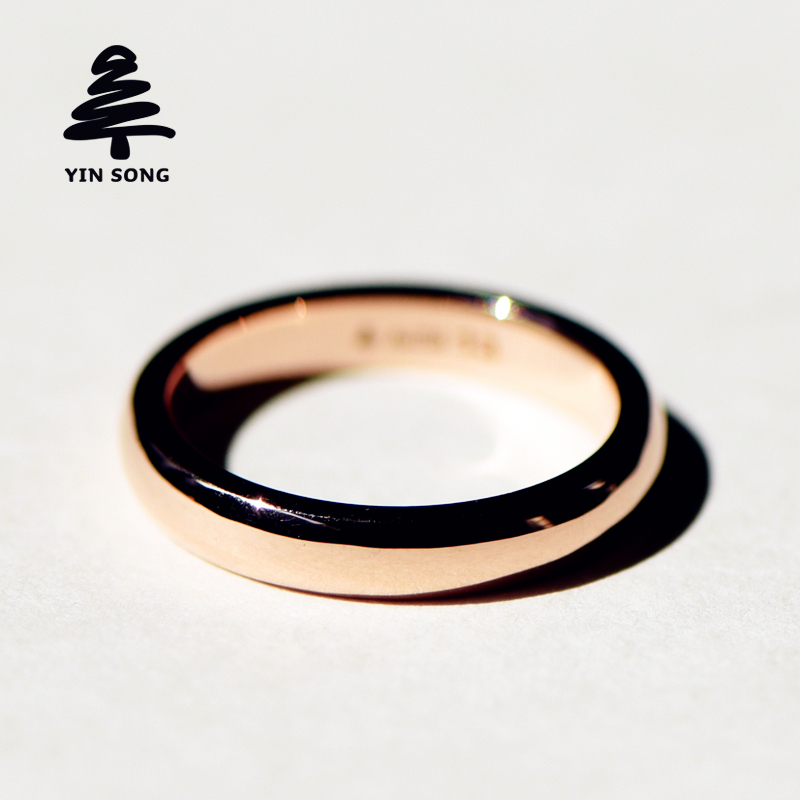 3 5mm curved plain circle Au750 rose gold ring 18K gold color gold couple ring lettering for men and women