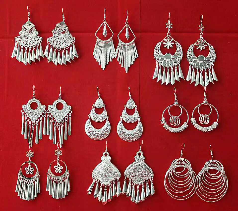 2020 manufacturer direct sales national wind jewelry ornament woman's ear pin hidden silver ear pendant color stone leaf long version earrings