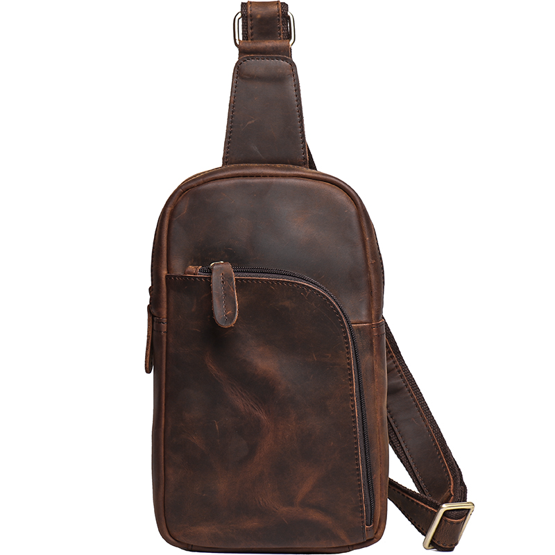 Handmade original top layer cowhide chest bag men's retro leather messenger bag crazy horse leather sports Korean version of the trendy chest bag