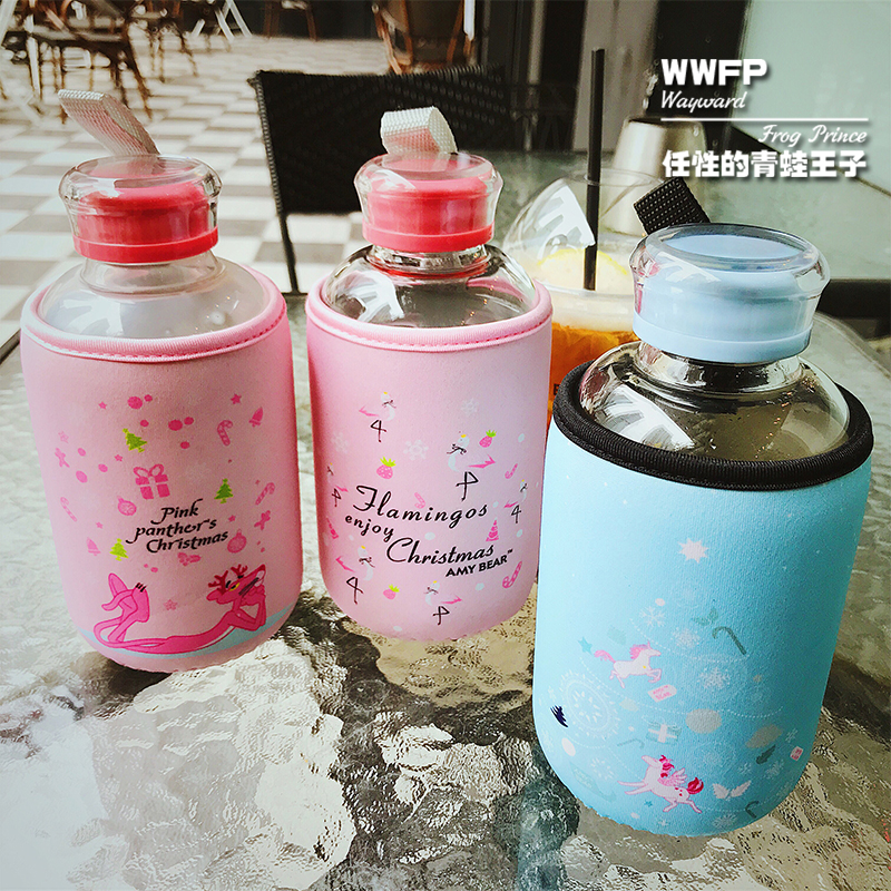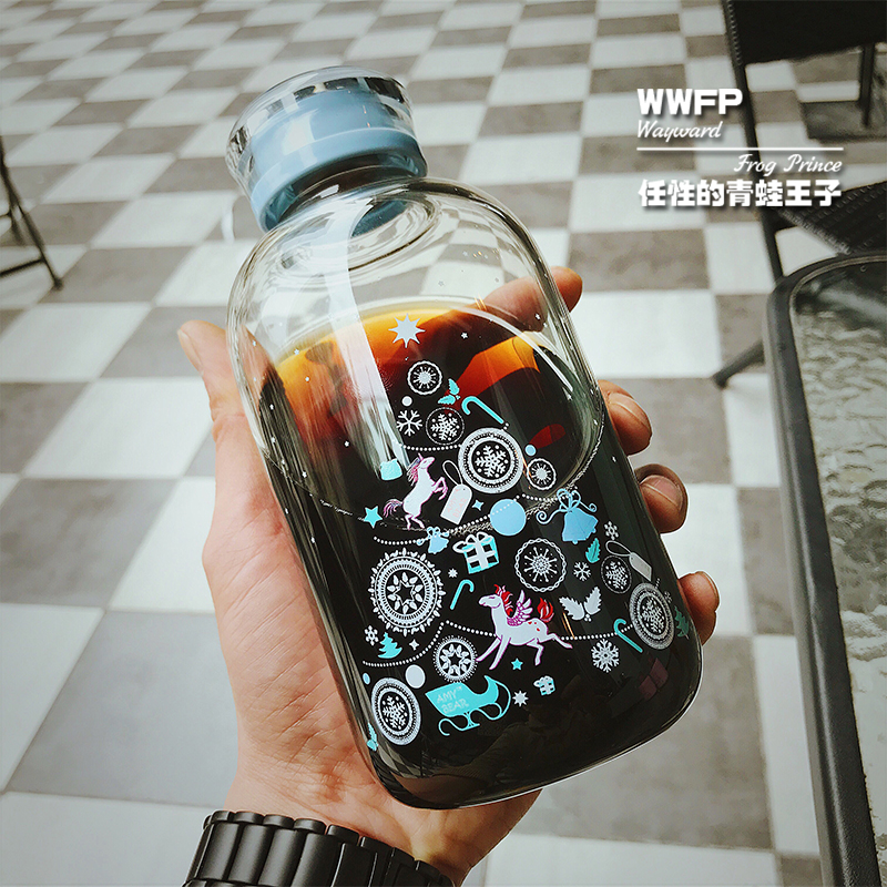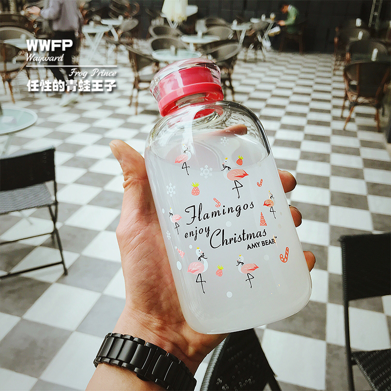 PD Flower Tea Soft Girl Cup Lemon Cup Glass Water Bottle Short Fat Large Capacity Leakproof Student Woman Cute Cartoon Kettle