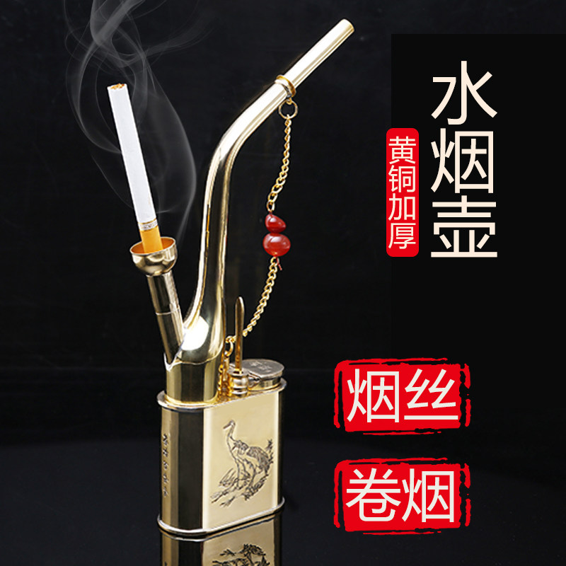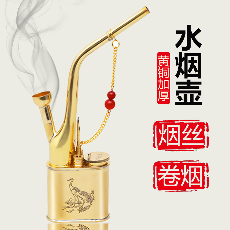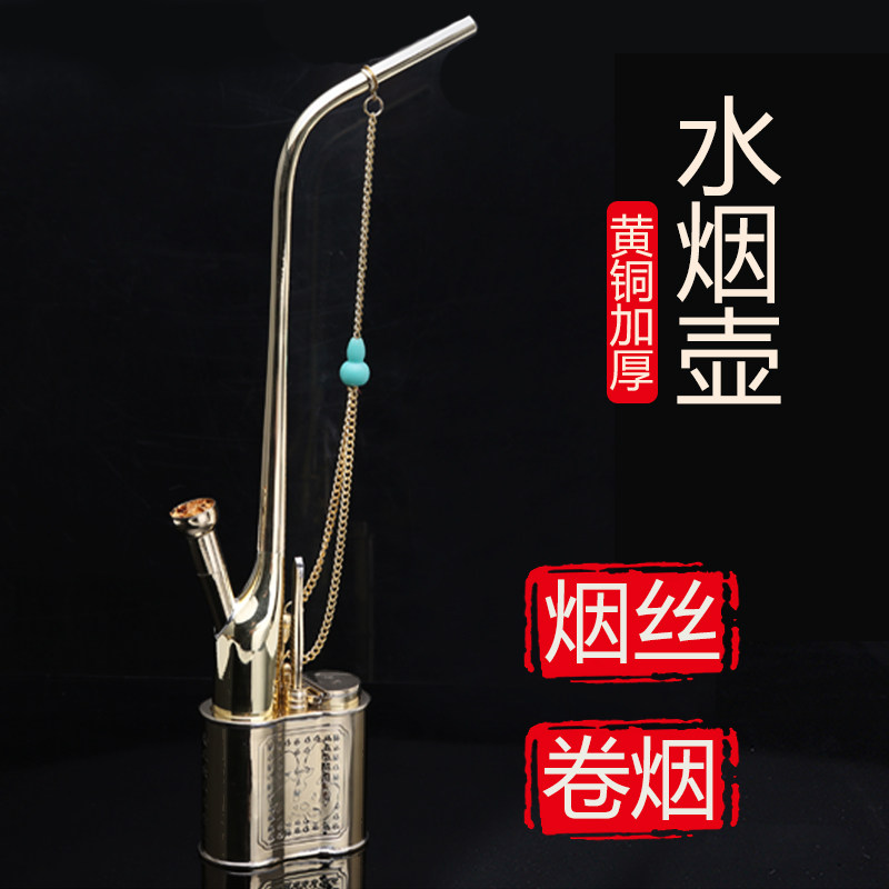 Water smoke pot full set of water pipe water tobacco shred tobacco bag brass retro pure copper old water smoke bucket over water filter cigarette holder