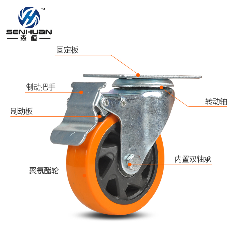 Senhwan Universal Wheels Heavy Duty 3 Inch 4 Inch 5 Inch Polyurethane Flat Hands Small Cart Wheels Directional Wheel Trolley Castors