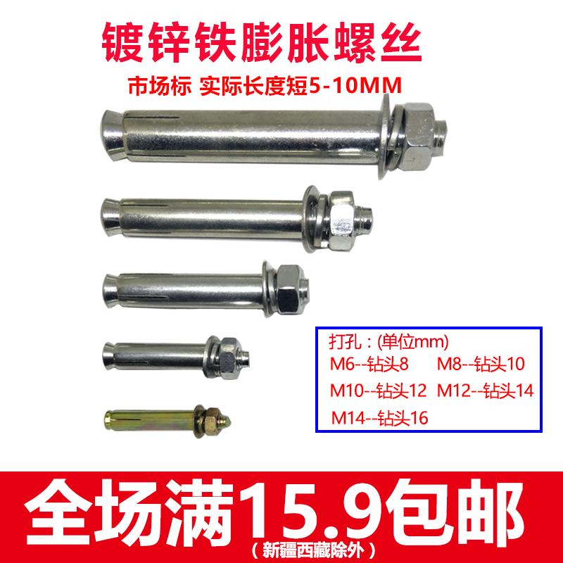 Metal expansion screw m8 galvanized lengthened iron fluffy screw 10mm air conditioning security door Lamblasting screw m12
