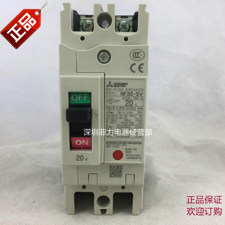 The Mitsubishi moulded case circuit breaker (MCCB) NF32-SV 2P 6A 10A 16A 20A 30A 32A open space spot