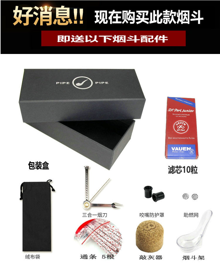 Imported tobacco fight Italy PIPELIN stone Nangwood Bent Solid Wood tobacco Dou Accessories Pumping V Grass Grass Lipper