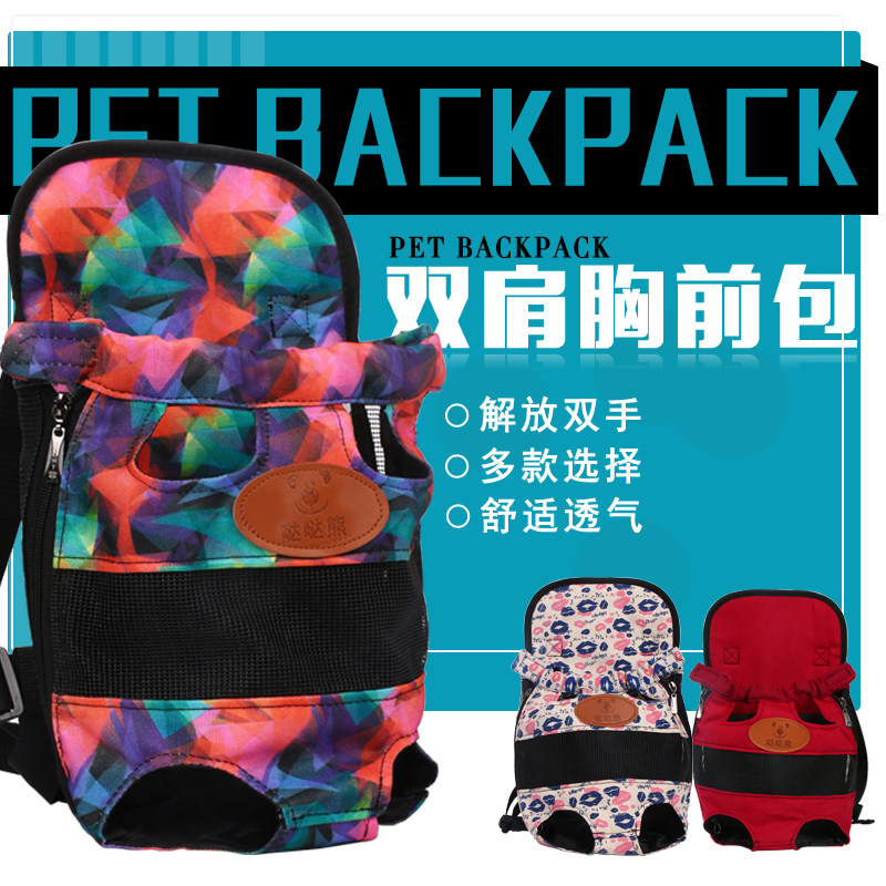 Dog chest backpack travel pet backpack small and medium dog portable bag da da bear Oxford cloth four-hole backpack