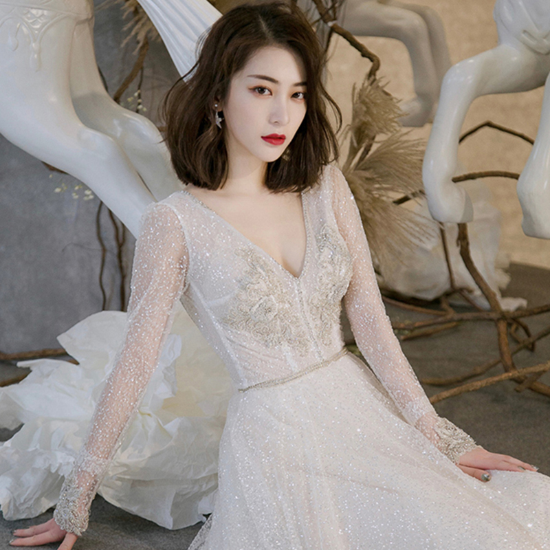 Starry sky wedding dress 2020 new long tail forest department princess fantasy simple V-neck long sleeve bride light out of the yarn