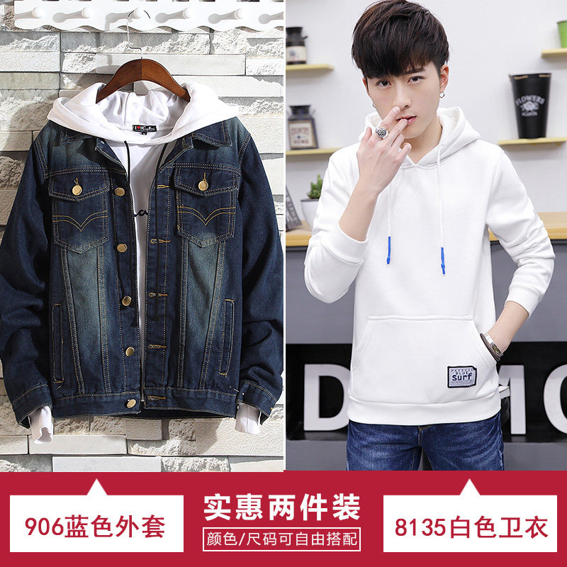Fall Denim Jacket Male Korean version Trend teen men's outfit set with handsome gas student jacket Spring and autumn clothes