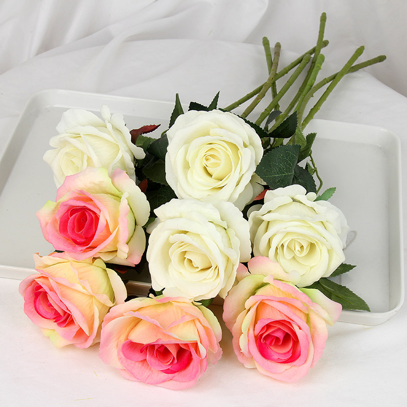 Simulation single hand-feeling velvet rose home decoration supplies wedding high-end simulation plant fake flower