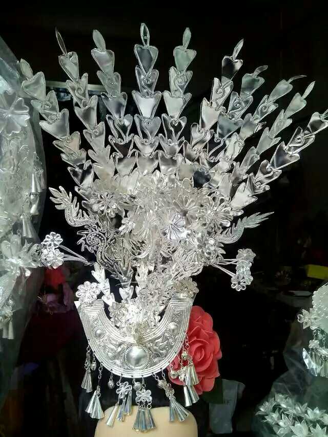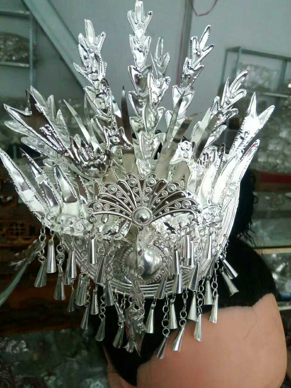 2020 new handmade Miao silver phoenix bird headwear collar folk dance performance costume headwear wild style custom