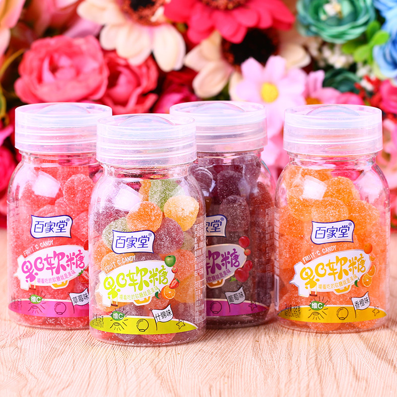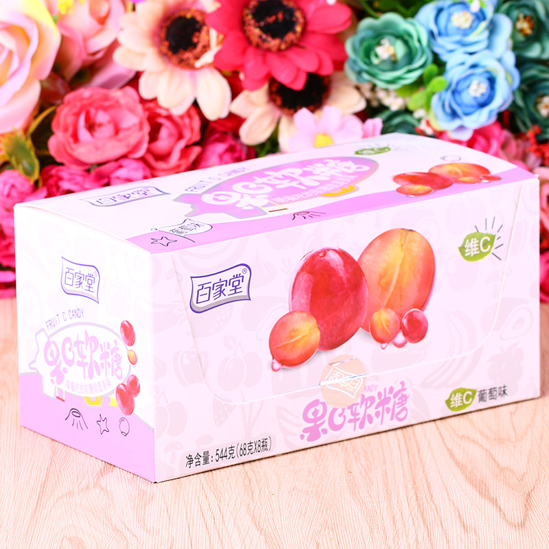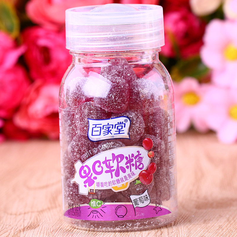 Baijiatang Fruit C Gummy Grape Flavor Vitamin C Juice Gummy QQ Gummy Gummy Candy Skittles Fruit Flavor 68gx8