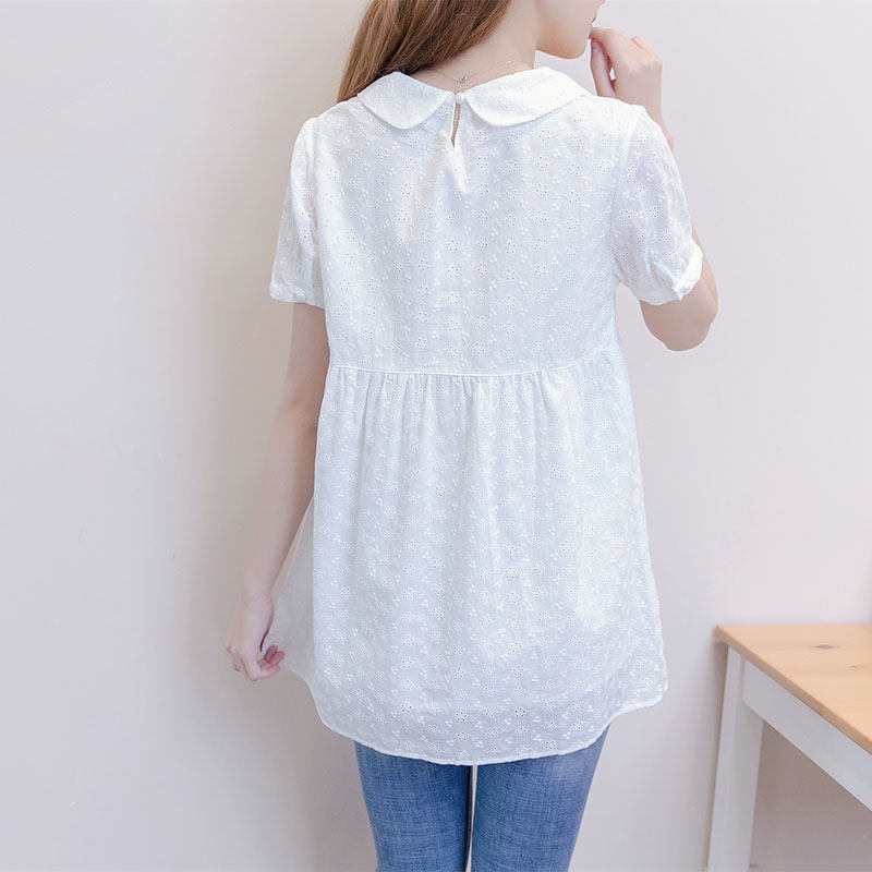 New maternity cotton shirt medium-long doll collar short-sleeved shirt summer maternity top loose white shirt