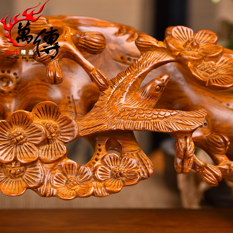 Rosewood carving auspicious ornaments happy eyebrows Solid wood carving Magpie wishful living room decoration craft gift decoration