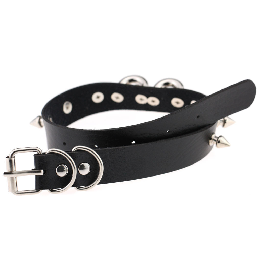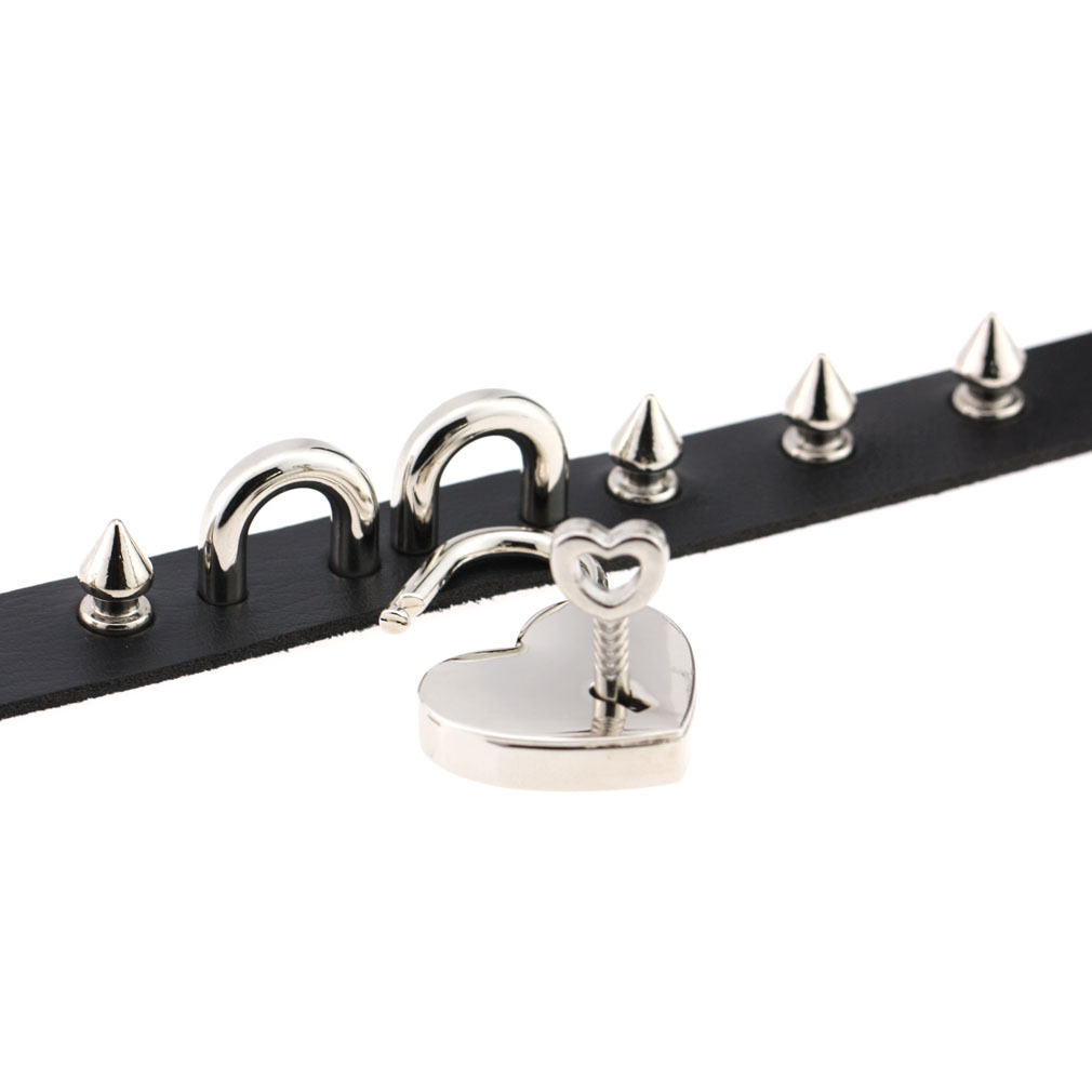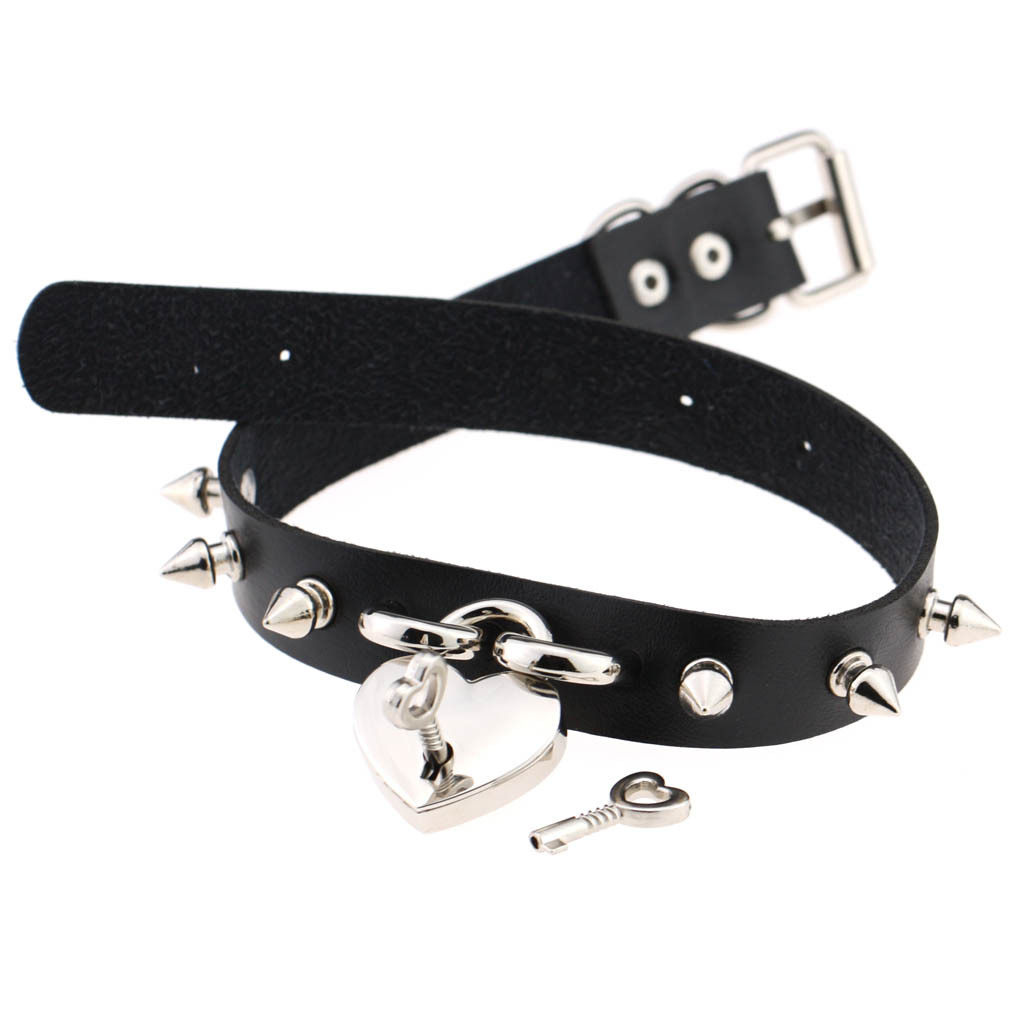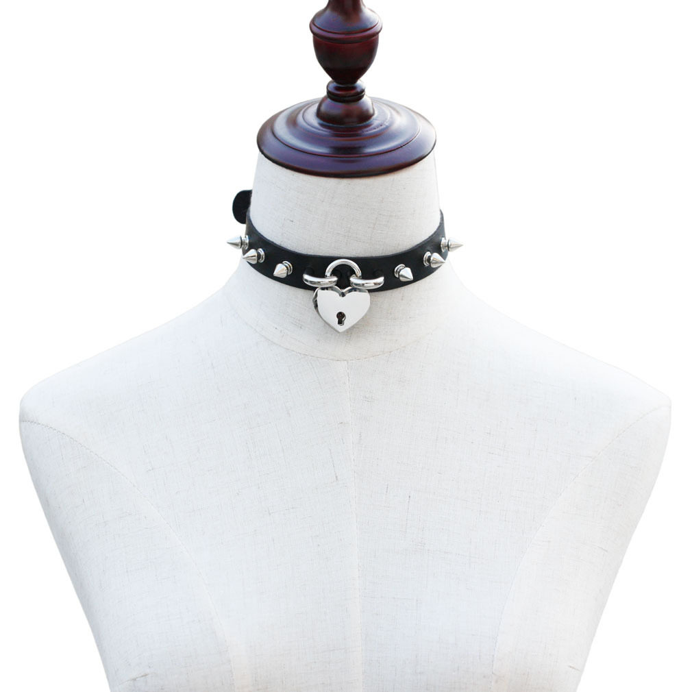 European and American punk personality leather Spice Tying toy tips Neck Sleeves Love Lock Rivet Necklace Bull Leather Necklace