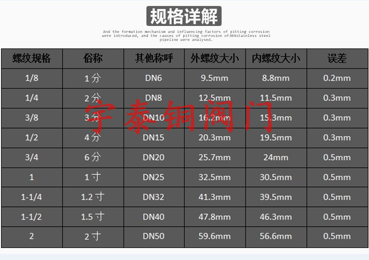 DN15 4 points (100g)DN20 6 points (150g)DN25 1 inch (190g)DN32 1 2 inches (386g)DN40 1