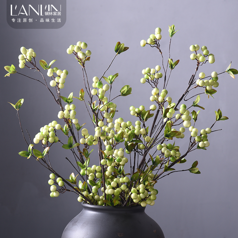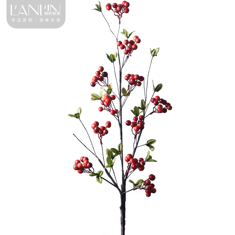 Simulation flower long branch acacia bean decorative flower Fake flower living room decoration Red small fruit fruit fortune fruit Simulation small wild fruit