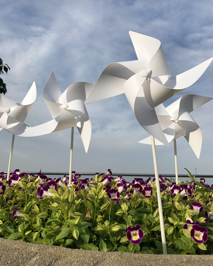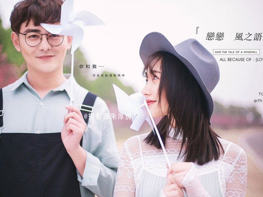 Travel windmill plastic white hand with outer scenery scenery of the couple's film studio photography props