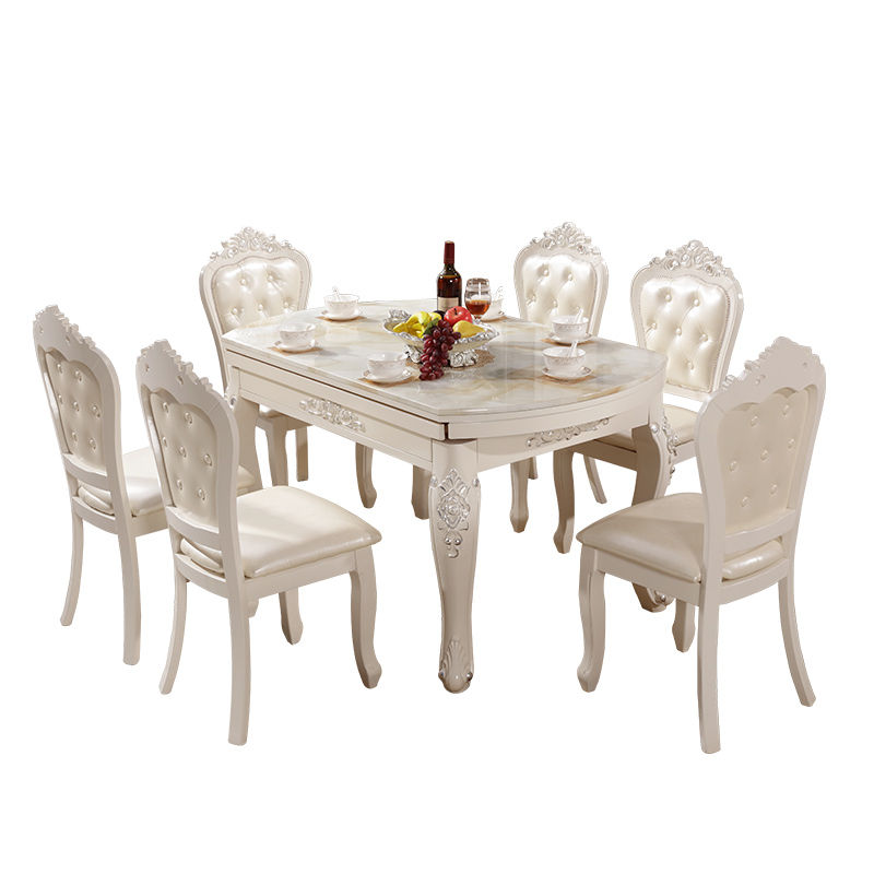 European style dining table and chair combination retractable marble dining table round table solid wood folding dining table household small apartment type dining table