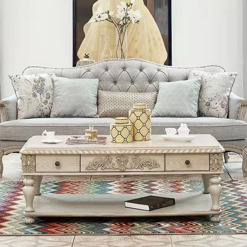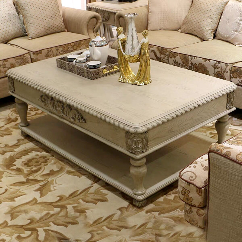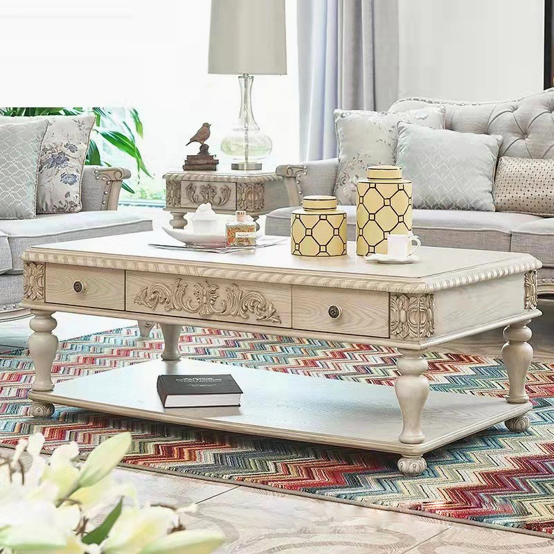 French solid wood coffee table American country retro white oak simple modern carved living room table furniture custom