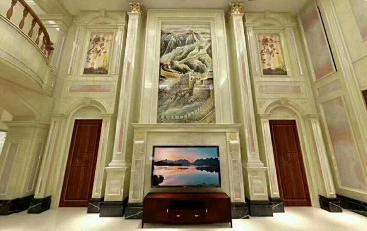 Factory direct TV background wall European living room full-body marble artificial stone villa duplex Roman column