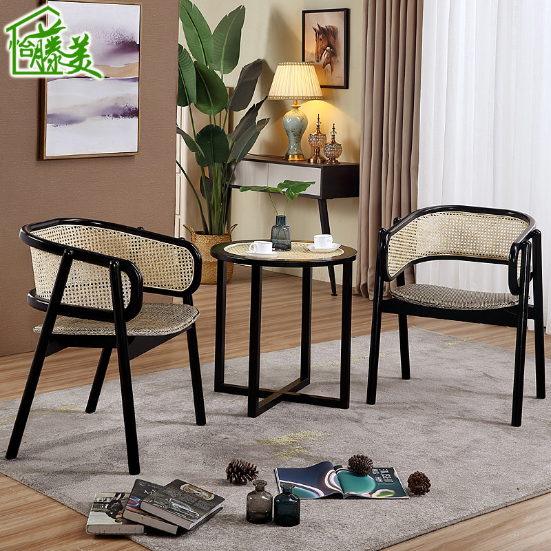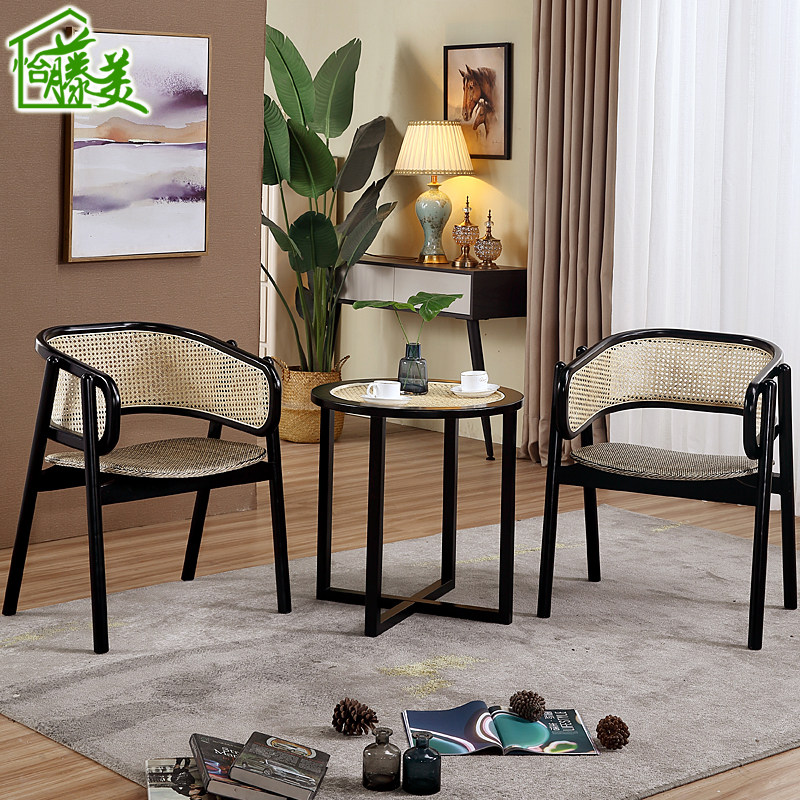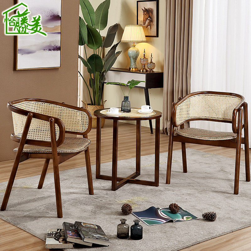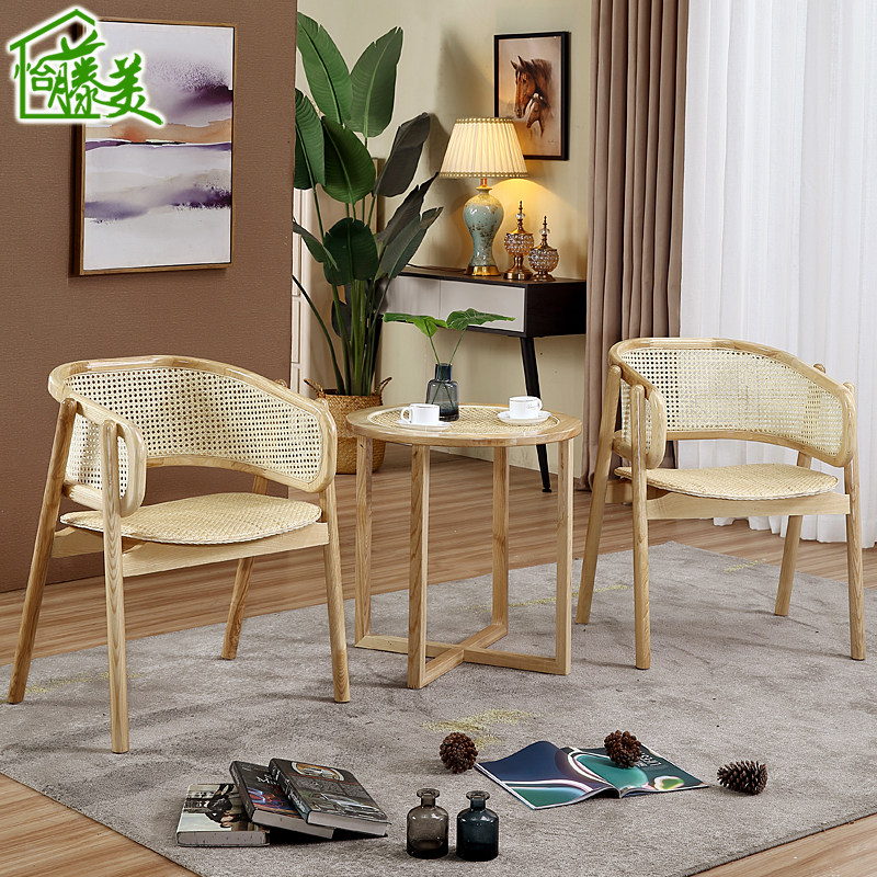 Nordic Balcony Vine Chic Tea Table And Chairs Vines Chair Solid Wood Vines Casual guests in talks for chair tea table Three sets of combinations