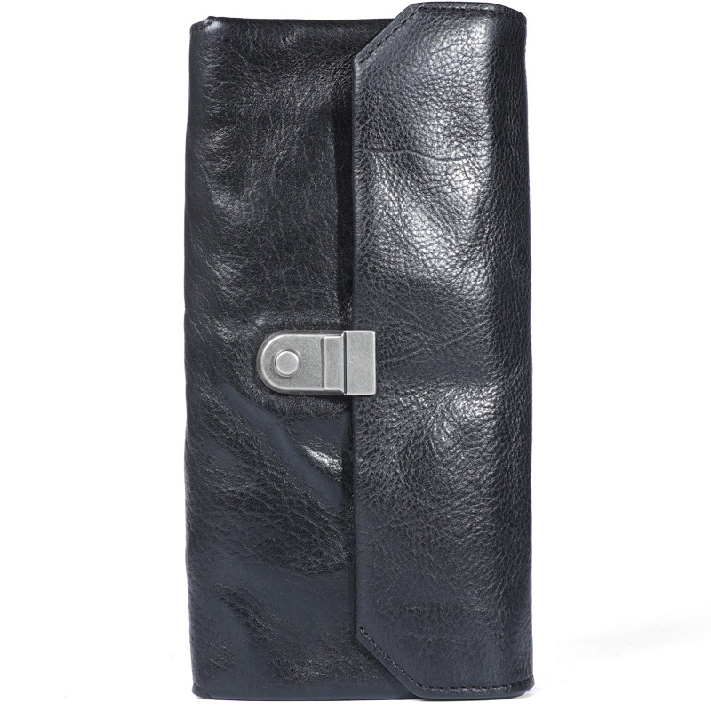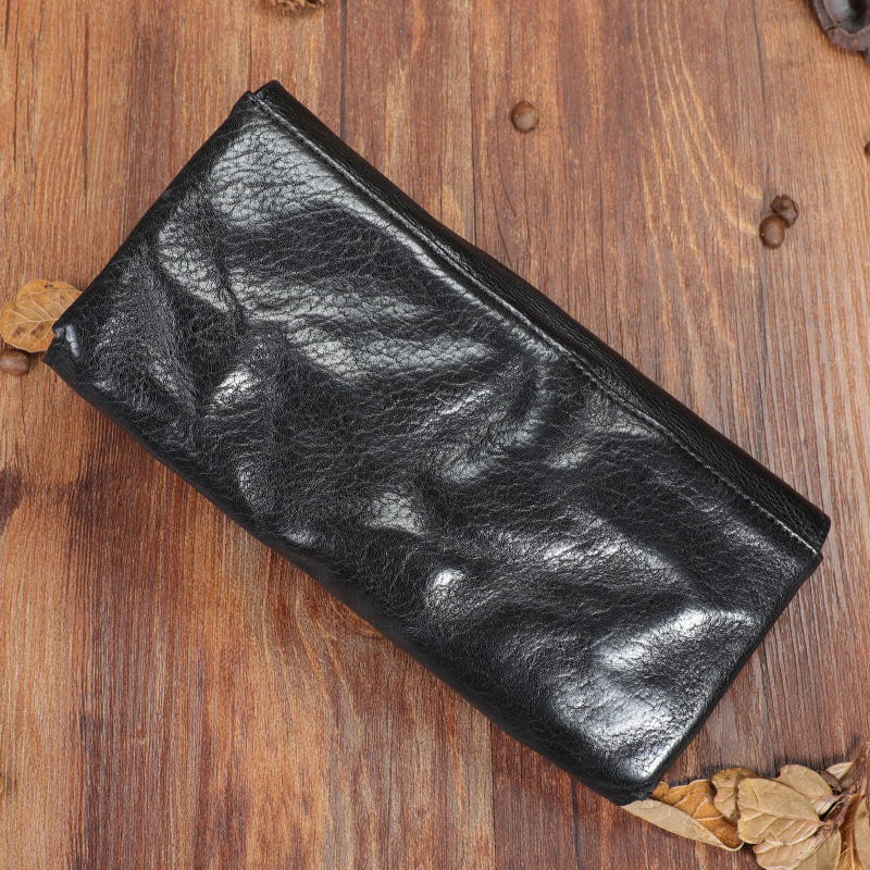 Original vintage handmade leather long wallet first layer cowhide fold wallet Men's and women's mobile phone bag lock handbag