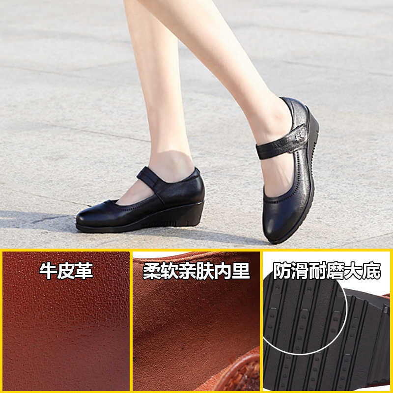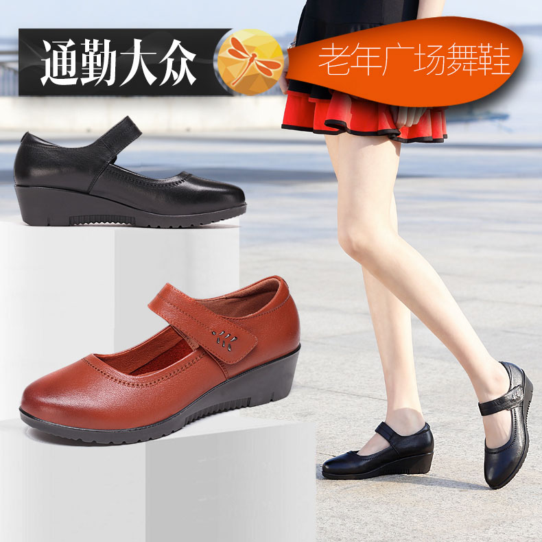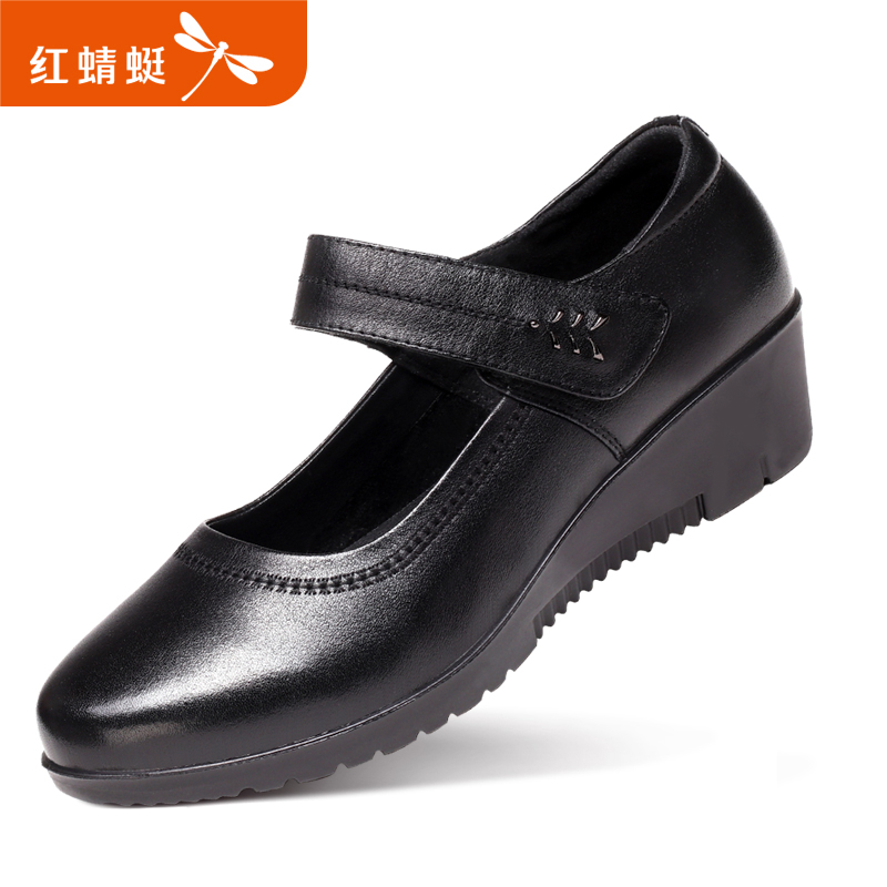 Red Dragonfly Middle Aged Mother Shoes 2022 Spring New Genuine Leather Women Shoes Flat Bottom Anti Slip Soft Bottom Wedge Type Single Shoe Woman