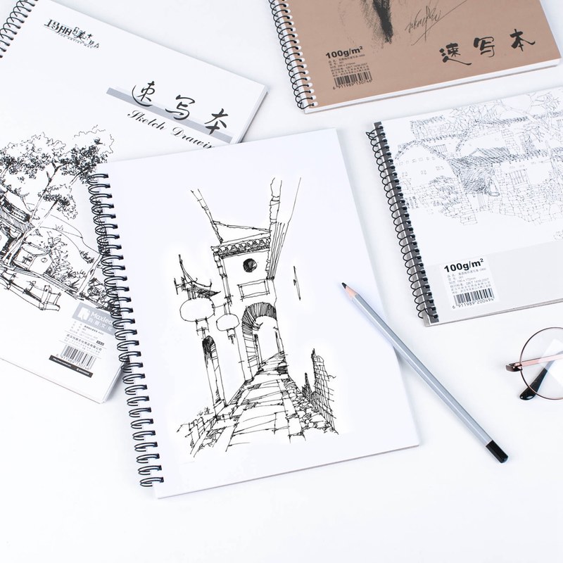 16k-Bull Leather Sketching 40 sheets (cover random) 16k-upturned sketch book 40 sheets (cover random) A4-upturned sketching 48 sheets (cover random) A4-clear