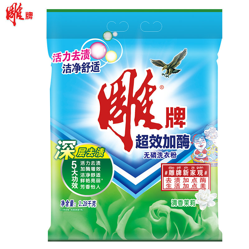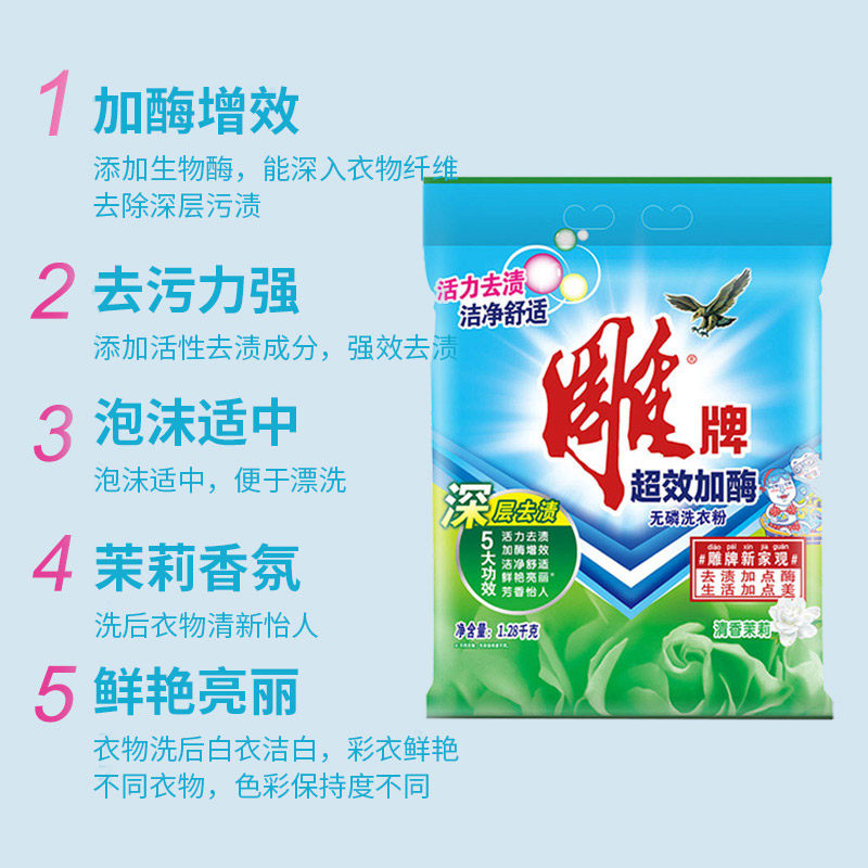 Carved brand washing powder 1 28kg large bag whole box batch super-effect enzyme large packaging home affordable laundry home clothing