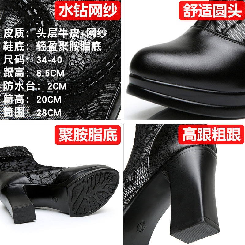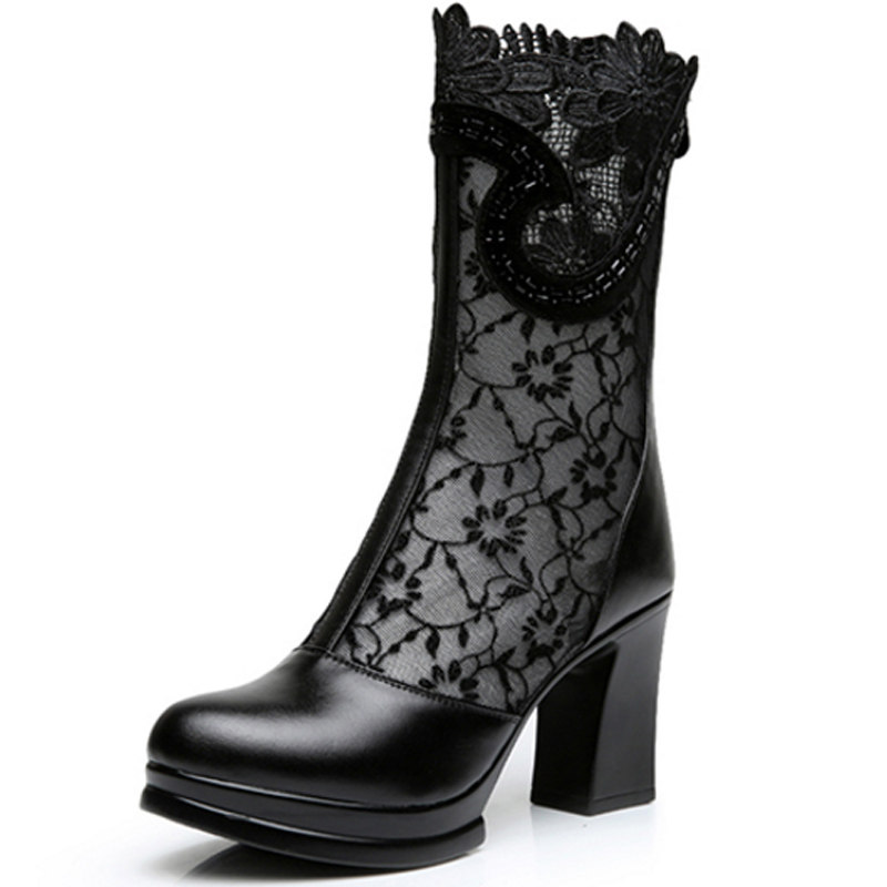 Boots Children Spring Fall 2022 New Coarse Heel Single Boots Genuine Leather Mesh Yarn Cool Boots Nemesis High Heel Women's Shoes