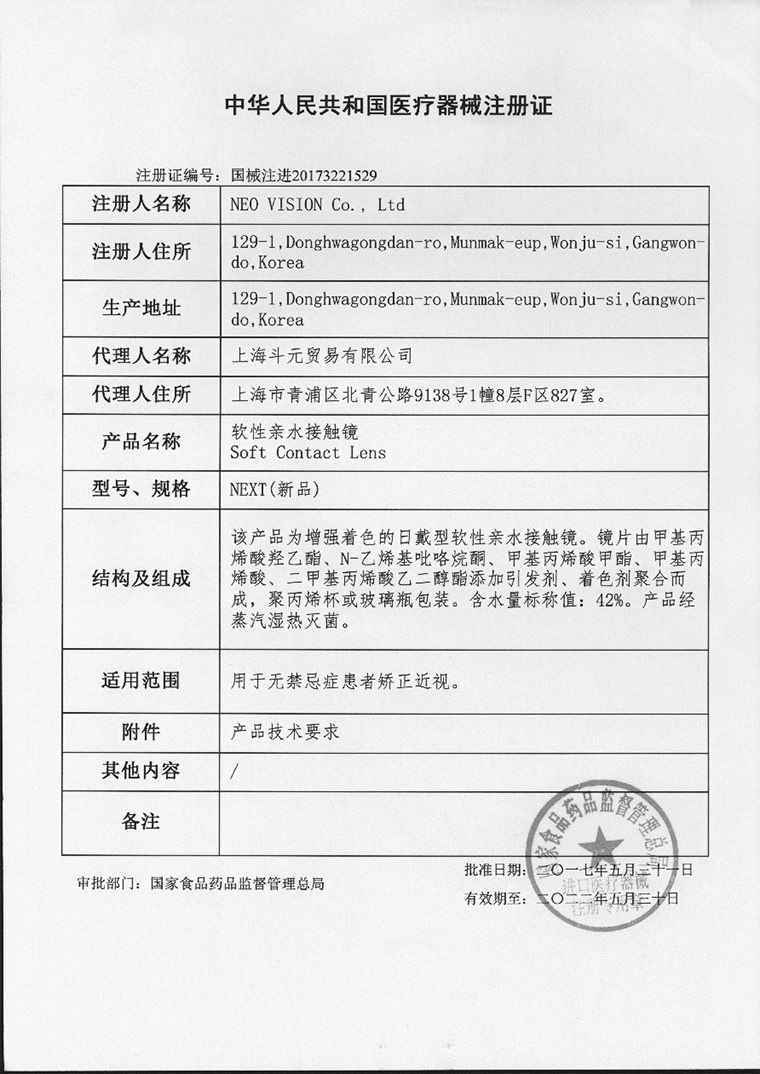 Contact lenses and the name of the care liquid commodity: