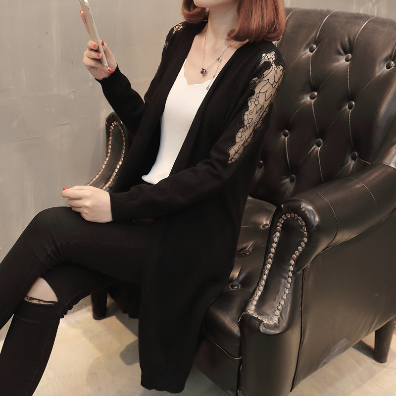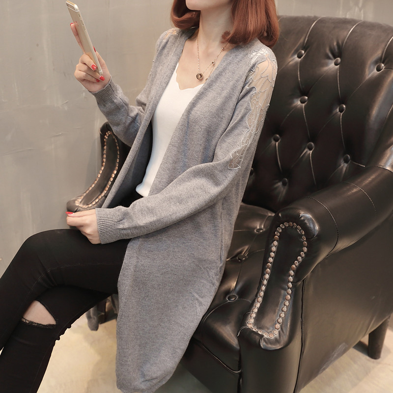 Spring clothing 2021 new early spring women's clothing lace hood sweater female chic knitted jacket female spring and autumn long version of the tide