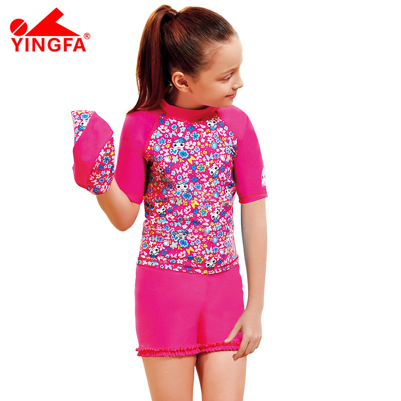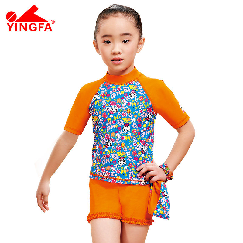 Yingfa two-piece children's swimsuit beach fashion cute girls big children printing hot spring warm girls hooded swimwear