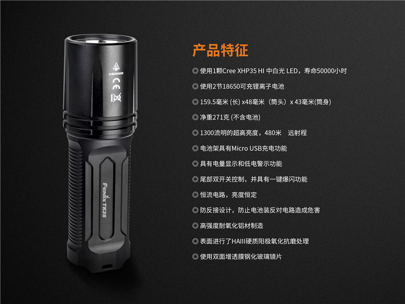 Fenix Phoenix TK35 2018 strong light USB rechargeable flashlight XHP35 LED long-range white