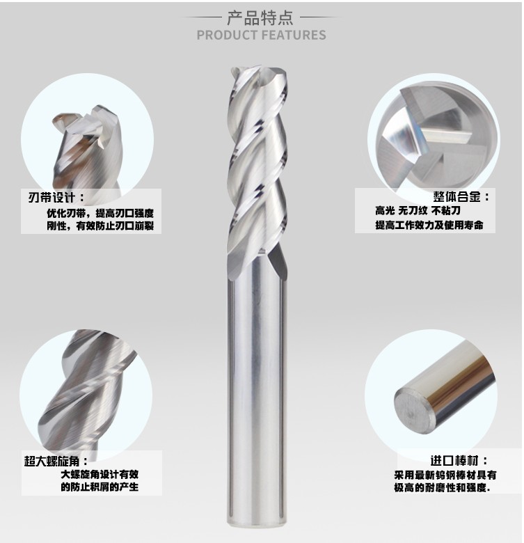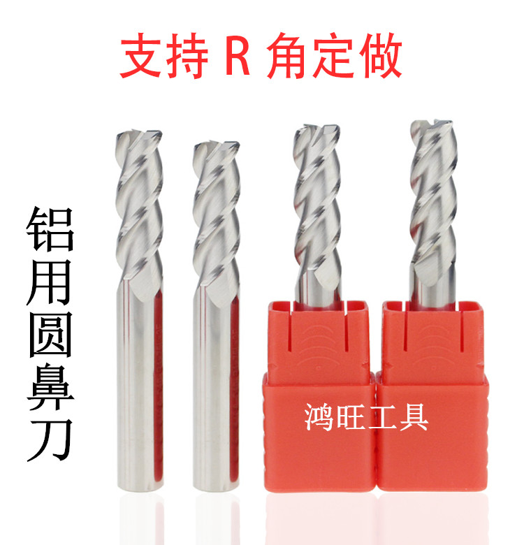 Aluminum alloy milling cutter 3-edge high-gloss tungsten steel aluminum milling cutter 55 degrees outer R angle round nose bull nose milling cutter 8R2 10R3