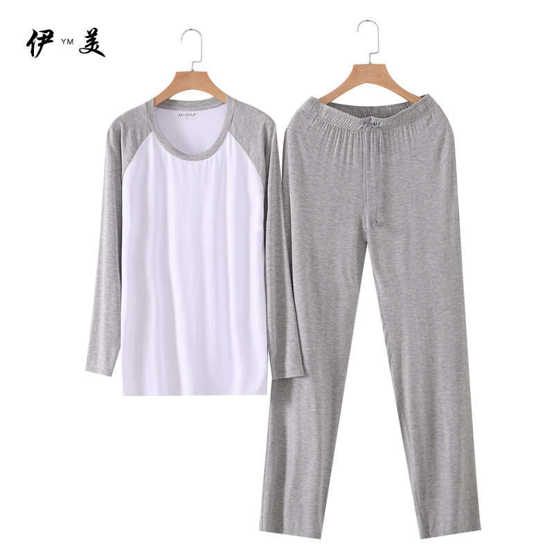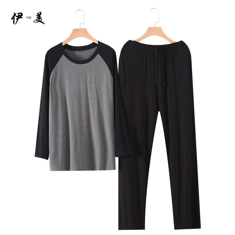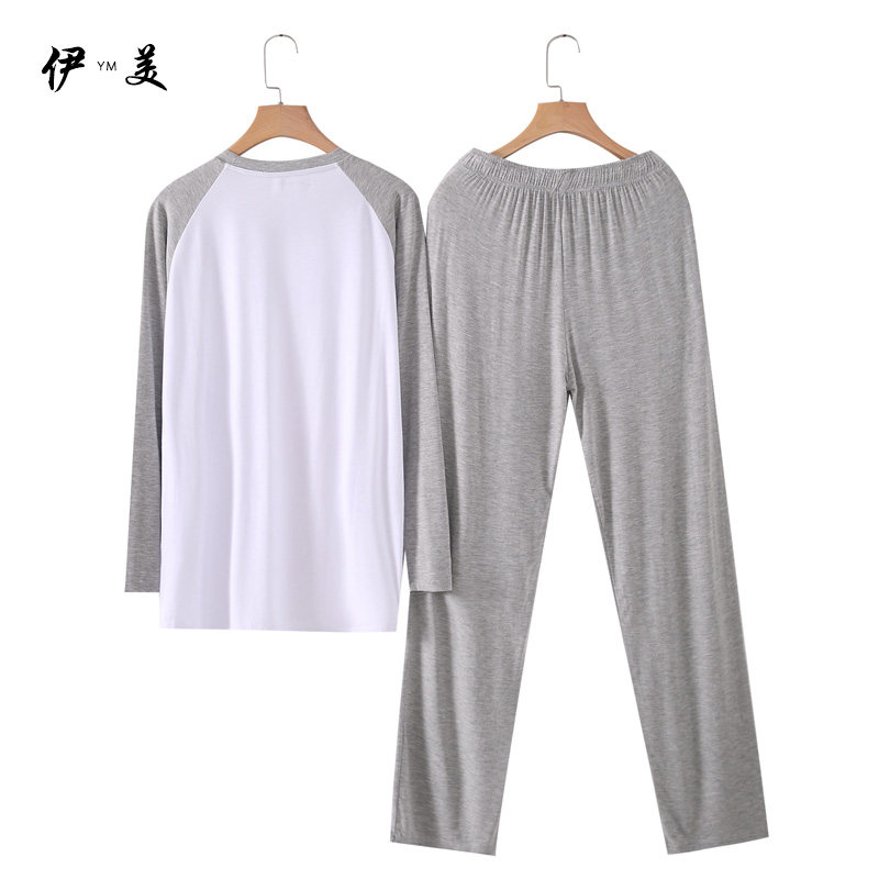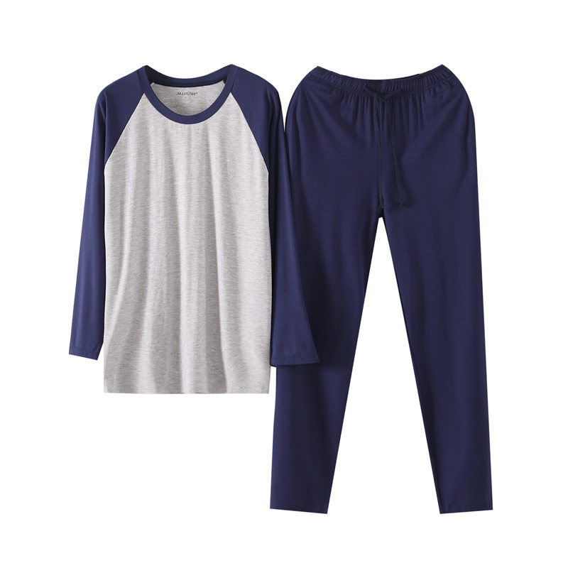Modal men's long-sleeved trousers home service suit spring and autumn plus size loose round neck vest thin pajamas