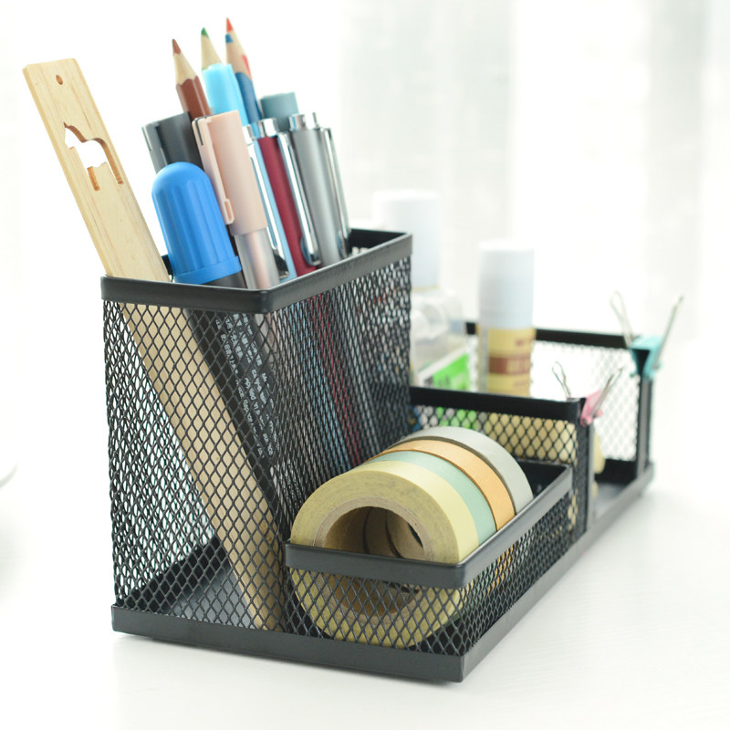 Iron mesh new other stand pen holder stationery storage box durable office supplies metal combination cylinder three grid seat