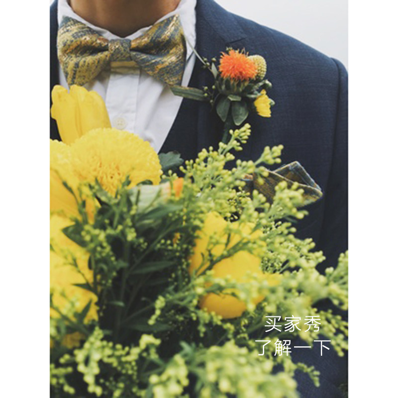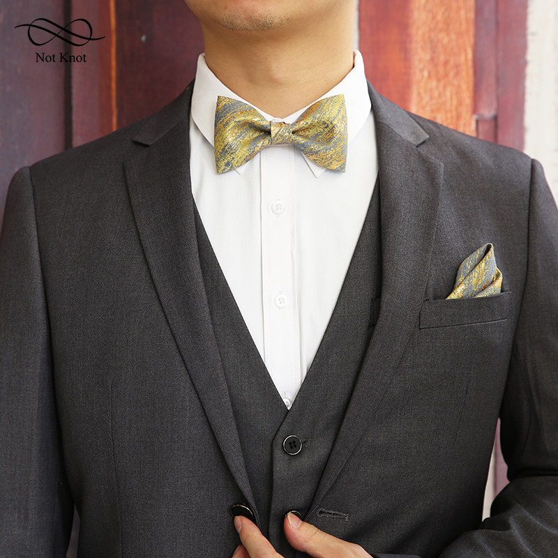 notkNot original printed handled neckline male wedding groom accompanied by a saucepan golden silk yellow blue