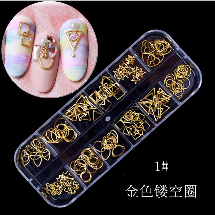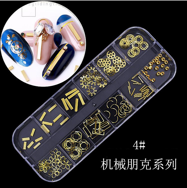 1# Gold hollow circle (box) 2 # Silver hollow circle (box) 4 # Mechanical punk series (box) 5 # Colorful water drop sequins (box) 7 #