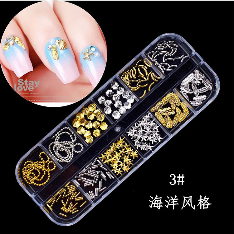 Nail Polish Jewelry Metal Frame Copper Sheet Rivets Mermaid Pearl Ocean Shell Hollow Jewelry Best Selling Styles