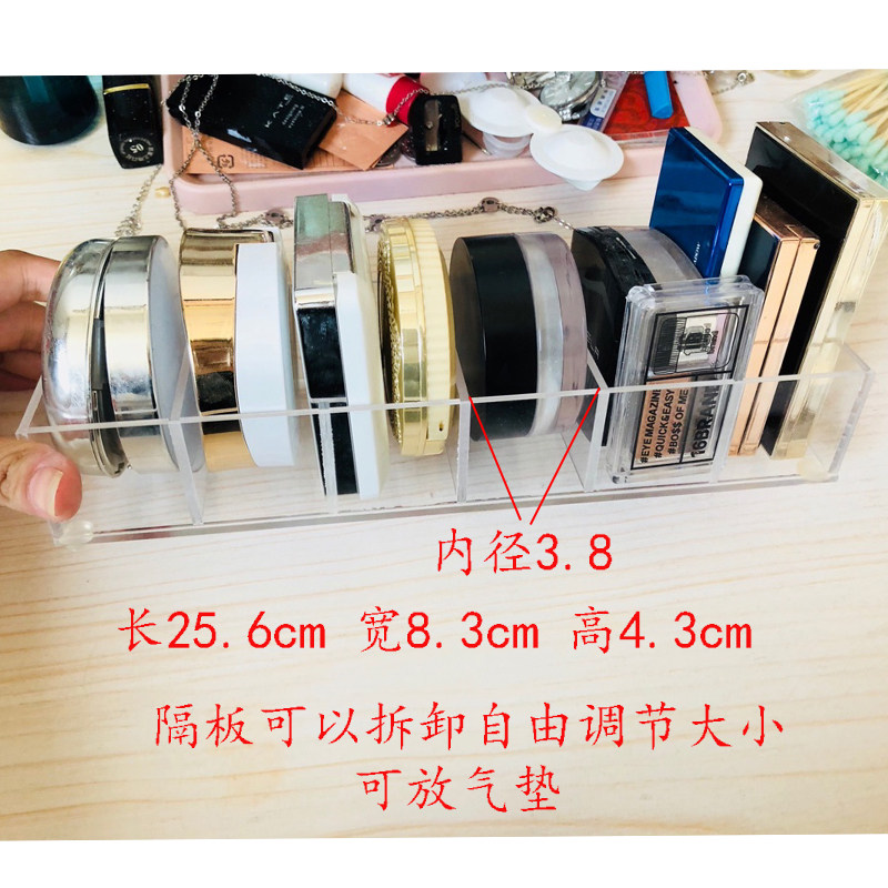8 large inner width 2 8 inner compartments can not be dismantled 6 compartments of the powder cake box with air cushion removable 12 compartments lipstick holder 36 compartments eye shadow box inner compartments can be dismantled lipstick brush bucket 24 compartments lipstick holder 3 compartments
