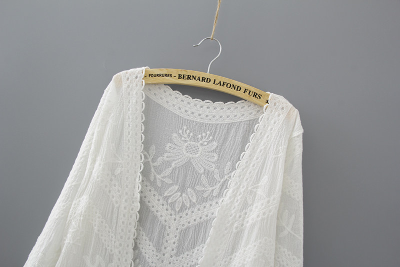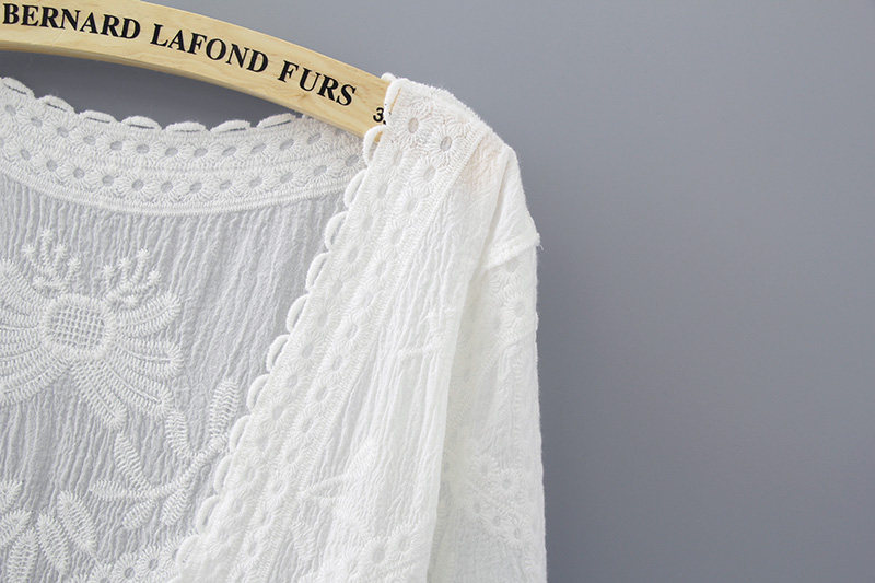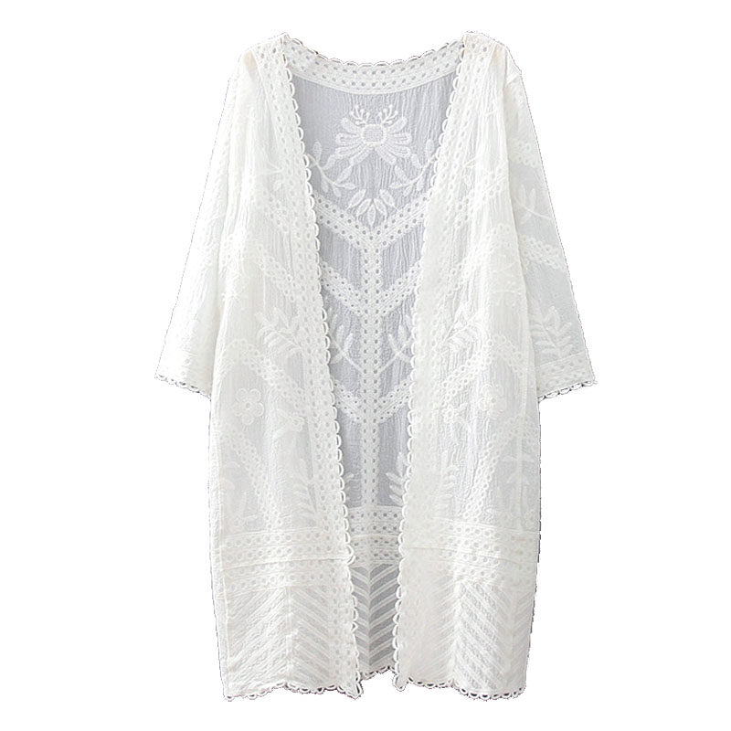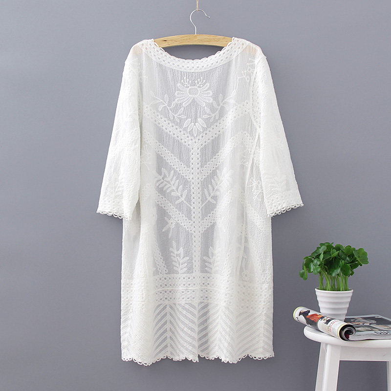 Pure cotton mid-length beach jacket white outer cardigan summer shawl travel holiday wild blouse loose