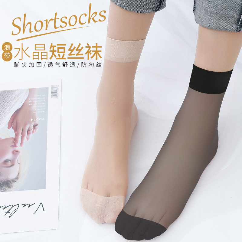 Langsha stockings women's short thin anti-hook wire wear-resistant crystal wire ultra-thin invisible transparent black flesh color women's socks summer