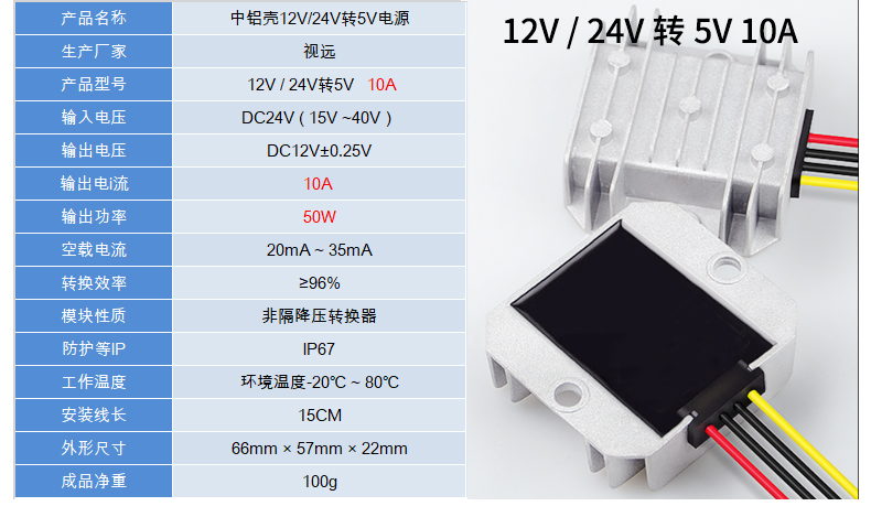 12V 24V to 5V 10A 50W DCDC Buck Module Vehicle Power Converter Monitoring Waterproof