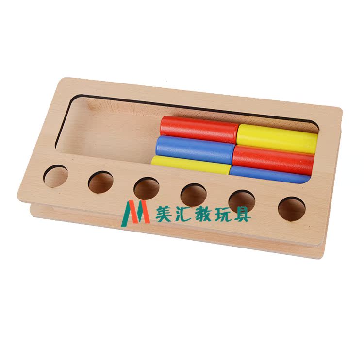 Mongolian teaching aids Three-color cylindrical insert box Professional teaching edition Montatessori senses early childhood 0-3 years old