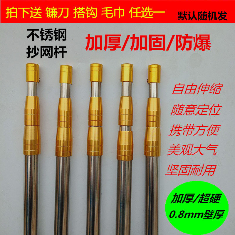 Fishing stainless steel copy net rod fishing positioning telescopic rod large object thickened super hard harpoon rod nest fishing net pocket