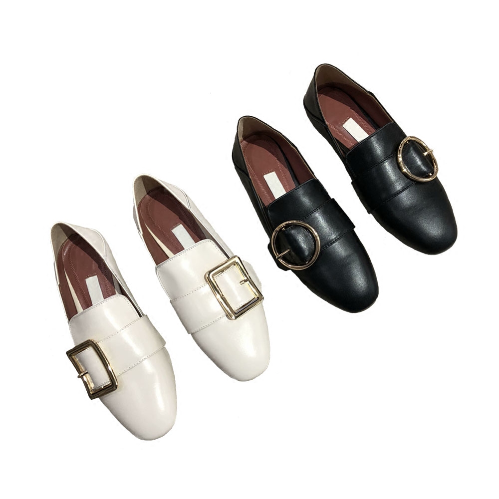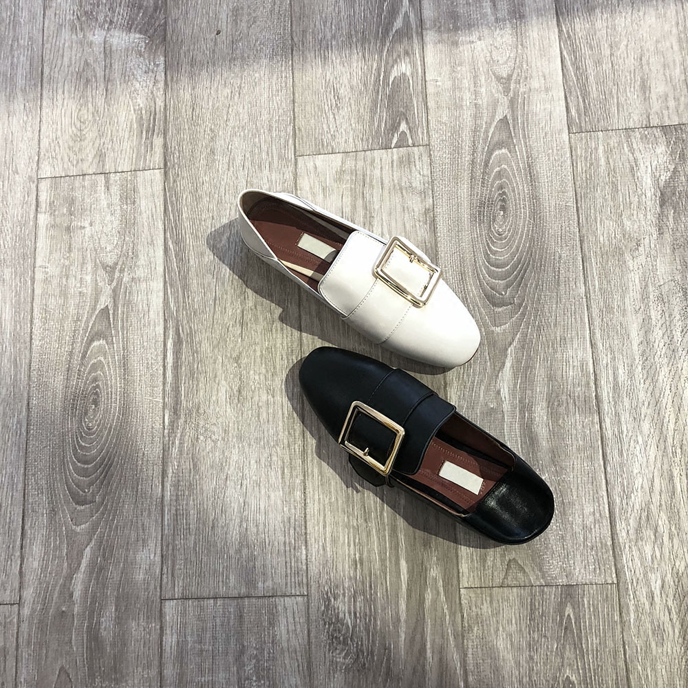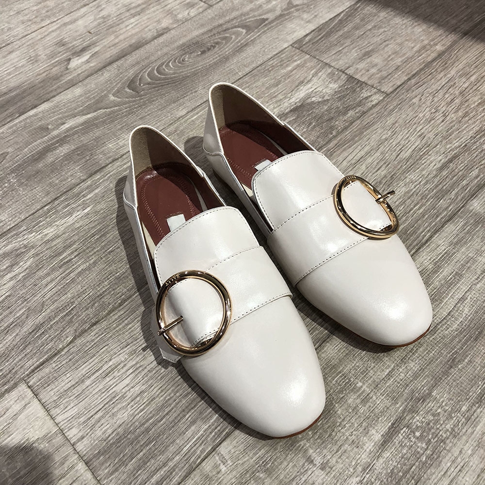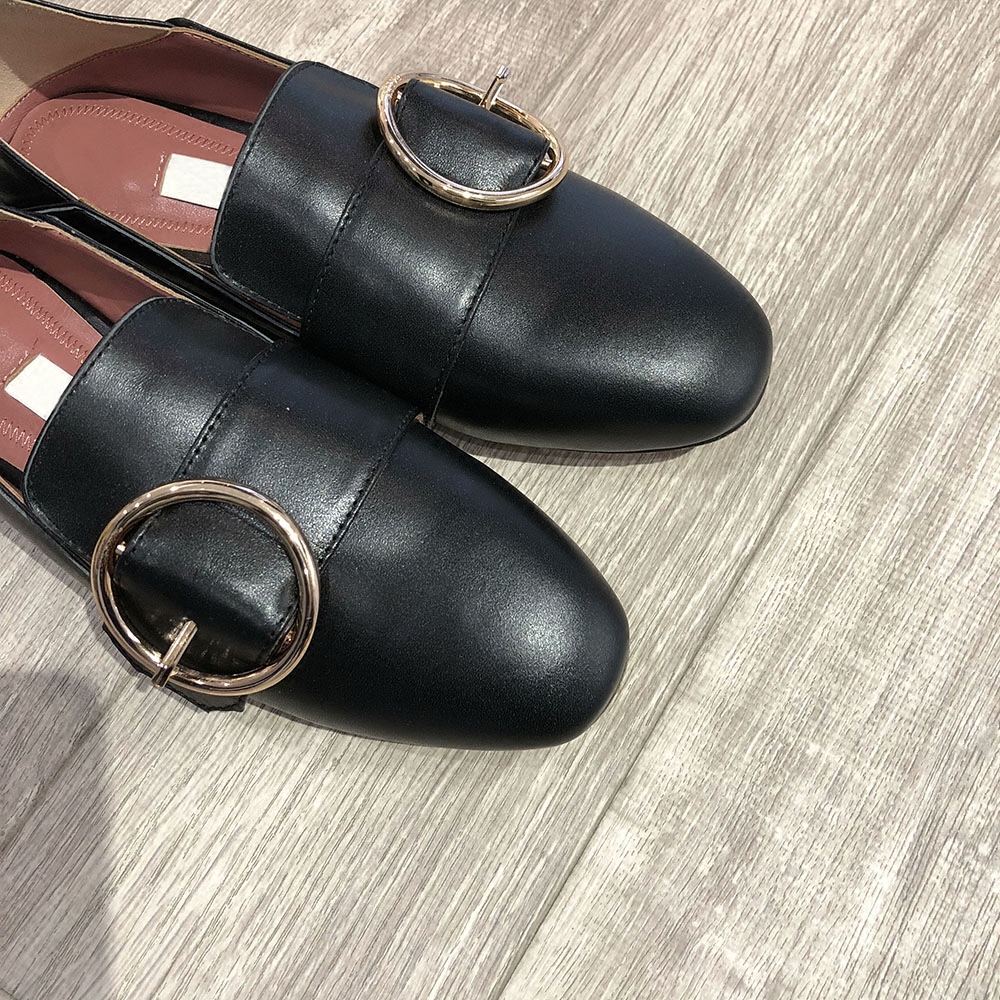 2022ss (Aphrodite) leather bag shoes new square buckle women's flat retro one pedal loafer